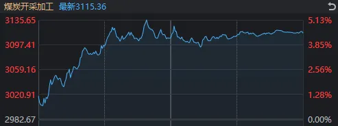但有趣的是,油气油服方向在短暂冲高后,涨幅回落了不少;真正领涨的,是煤炭开采加工、煤化工等方向。