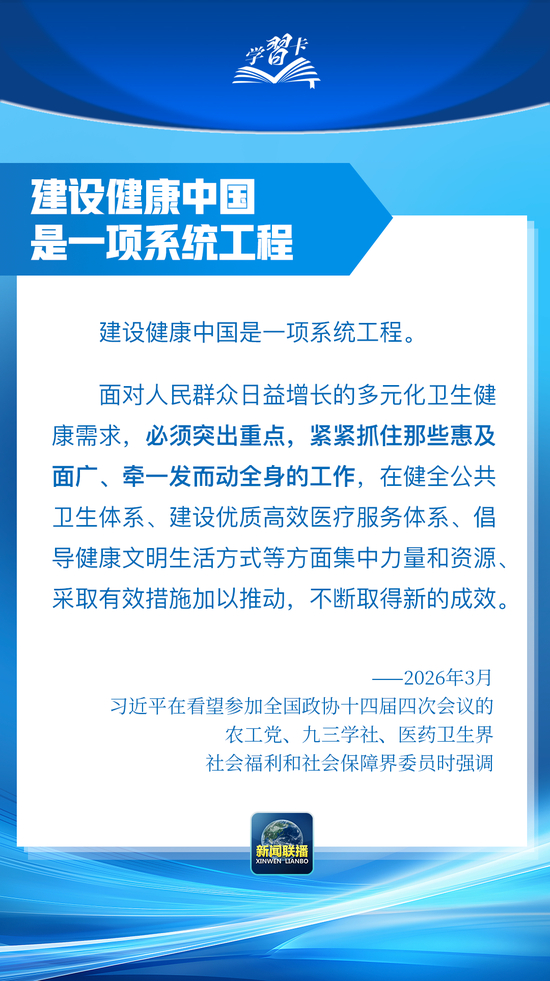 总书记在重要讲话中强调,坚定不移走中国特色卫生与健康发展道路,推动“十五五”时期健康中国建设取得决定性进展。