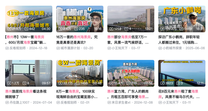 视频博主镜头前那些廉价的海景房和公寓,大多位于大亚湾、惠阳区等临深片区。