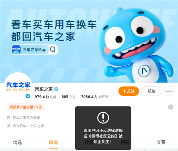据国内媒体报道,汽车之家官方客服对此表示,相关账号即将恢复正常,但账号被禁止关注原因和具体的恢复正常时间暂未收到相关说明。