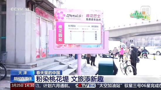 为方便市民游客出行,今年,当地还特意开通了免费定制公交专线,串联起桃花堤、西沽公园等主要游览点位,打通赏花出行“最后一公里”。据统计,3月14日至22日,桃花堤和西沽公园累计接待游客88.18万人次。